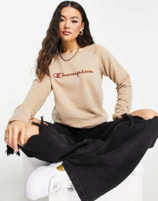 Champion Sweatshirt with Large Logo in tan-Brown