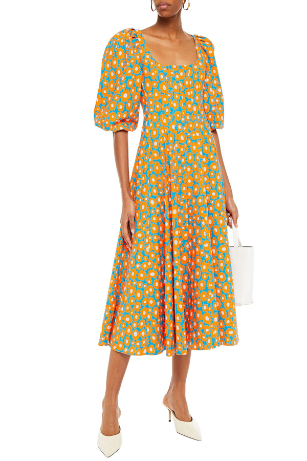 Staud Pleated Floral-print Linen-blend