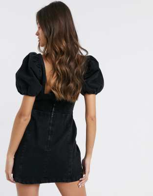 Black Denim Square Neck Puff Sleeve