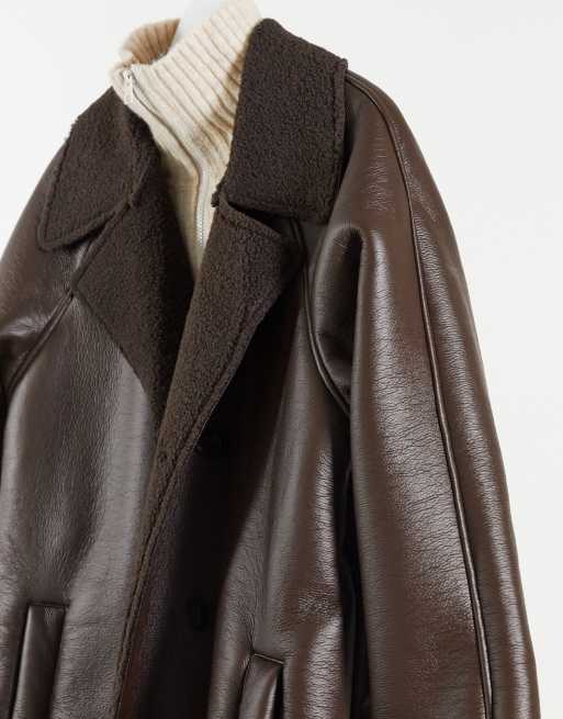 ASOS DESIGN extreme oversized cropped faux leather jacket in brown | ASOS