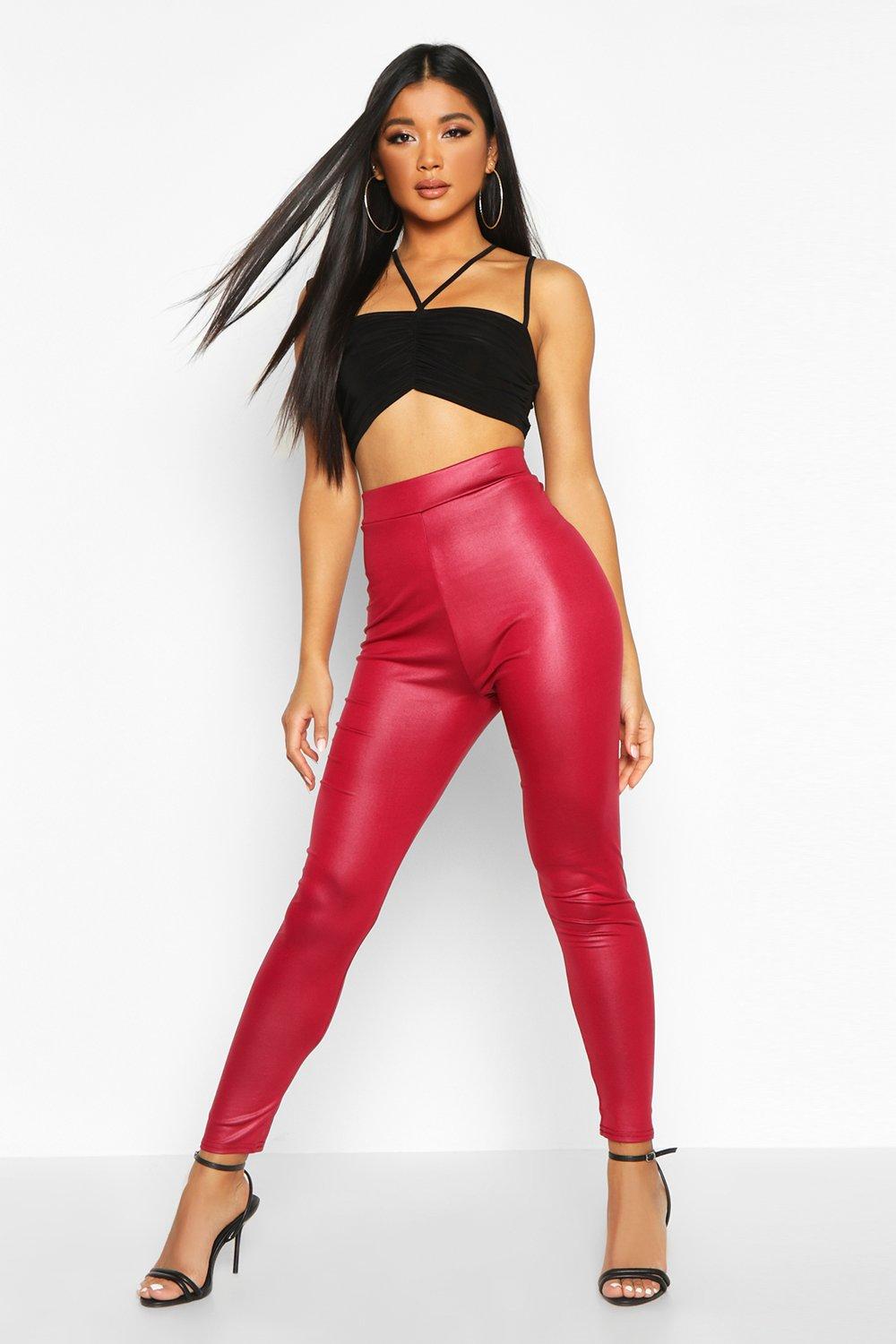 High Waist Wet Look Leggings | boohoo