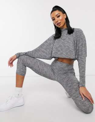 Grey Jumbo Rib Crop Top \u0026 Legging Set