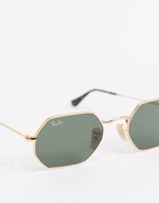 Rayban hexagonal sunglasses in gold | ASOS