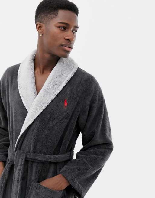 Polo Ralph Lauren terry shawl robe contrast collar and large player back logo in charcoal marl | ASOS