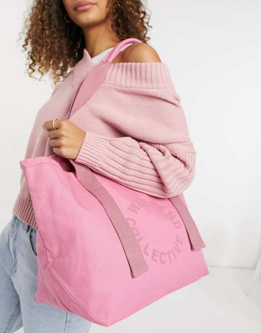 ASOS Weekend Collective canvas tote bag in pink | ASOS