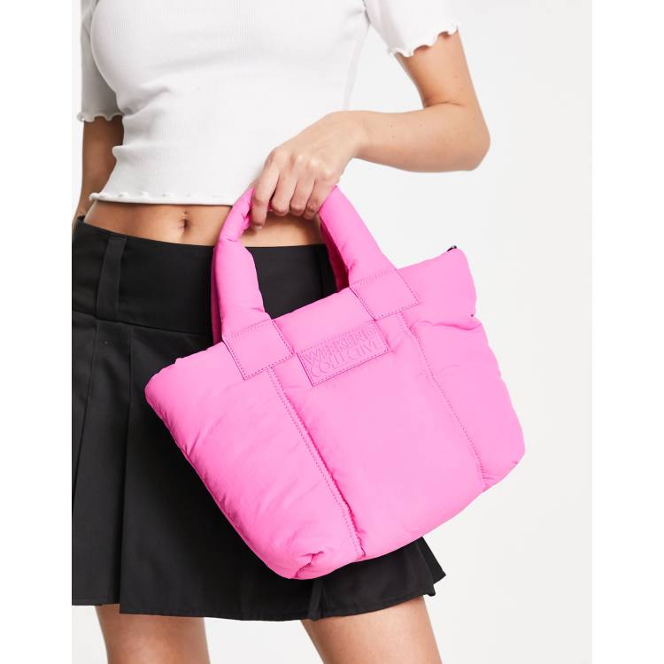 ASOS Weekend Collective mini padded nylon tote with crossbody strap in pink | ASOS