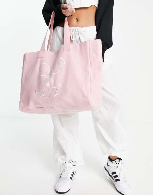 VAI21 tennis ribbed jersey tote bag in pink | ASOS