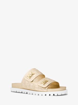 Michael Kors Stark Metallic Logo Embossed Faux Leather Slide Sandal In Gold | ModeSens